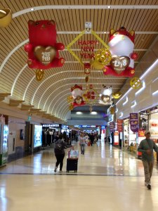 The Taipei airport is one of the nicest we have been in. Every gate is themed with electric available and free WiFi and carts.