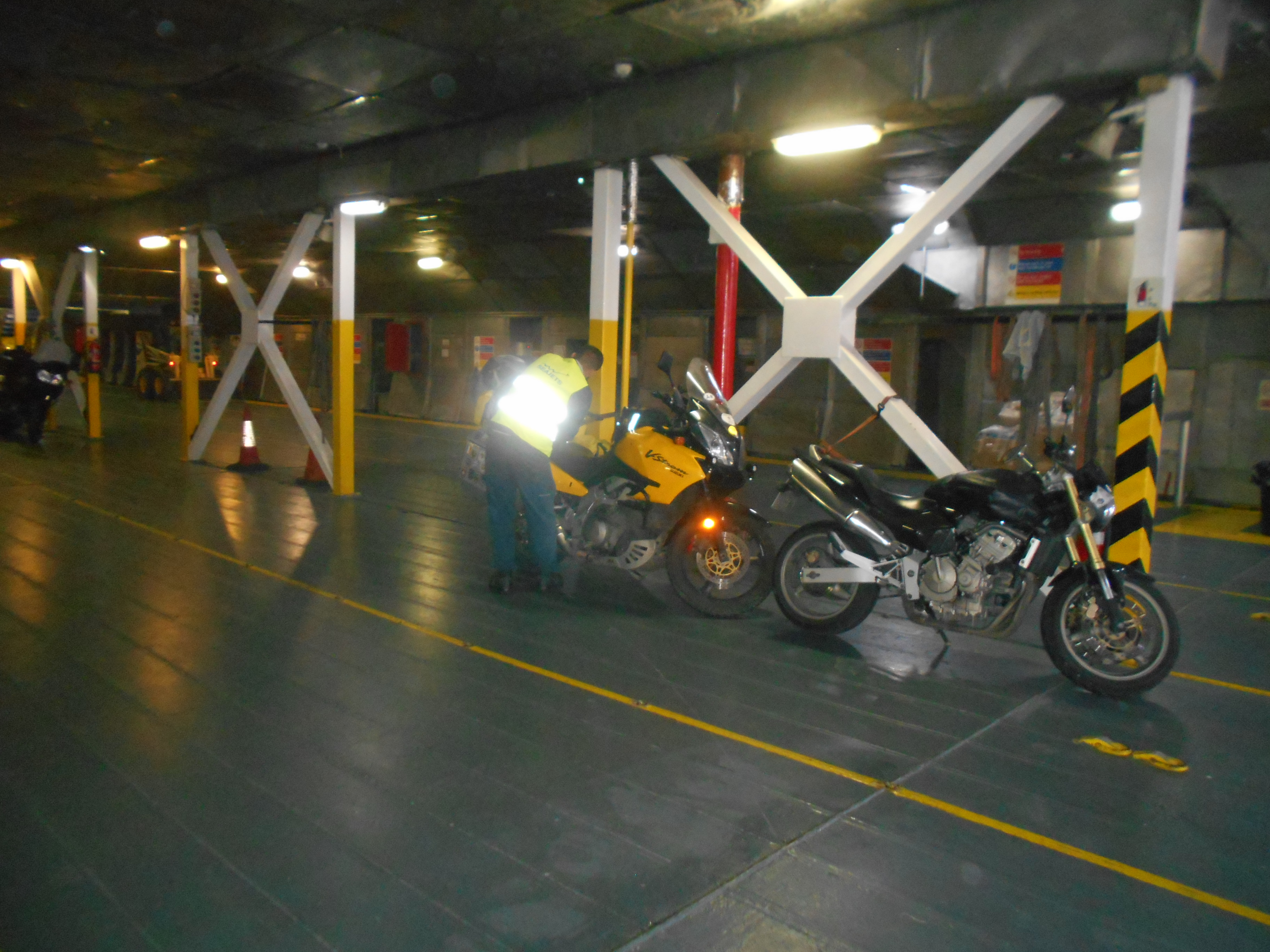 The ferry trip would only be a couple hours which would put us into port just as the sun was setting. We were at the front of the queue but loaded after the large semis had all backed into the hold. Melanie walked on board as I parked next to a railing as directed by the men loading the ferry. I watched as they expertly lashed my bike to the rail and hoped that’s with it would remain for the journey.