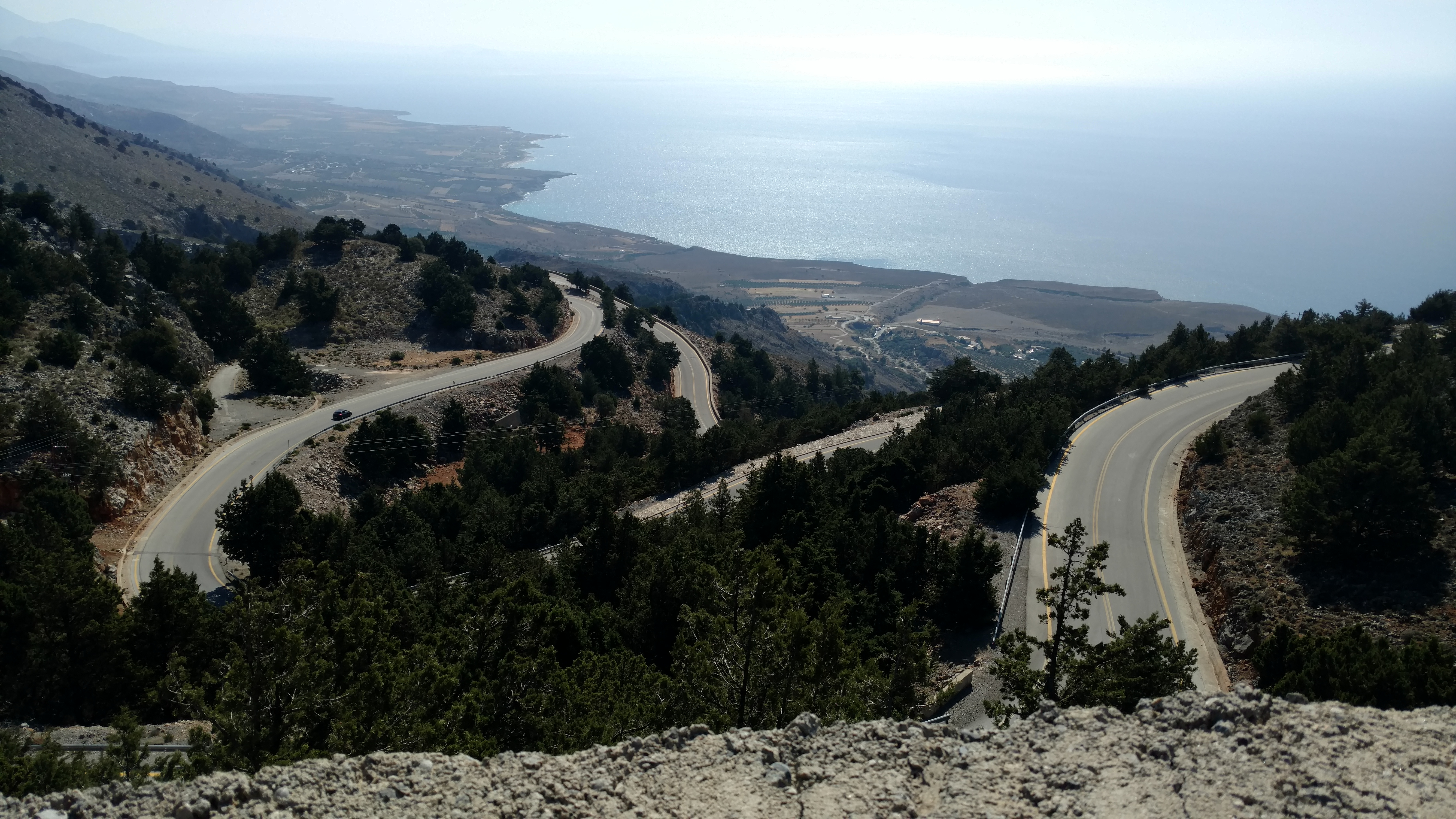 While looking at maps that night I found two great looking roads on the south side of the island. You know the kind. You look at the maps and there is a very curvy road with switchbacks and elevation changes right down to the coast and one way in, back up the mountain. The way south toward the coast went through the Imbros Gorge which is an 11km long canyon. Once you reach the coast you pass through Sweet Water Beach before starting the switchbacks back up the mountain with the most incredible views of the sun glistening off the Mediterranean. After reaching the top there is an old wooden bridge crossing anther gorge to an old church, the Church of the Archangel Michael.