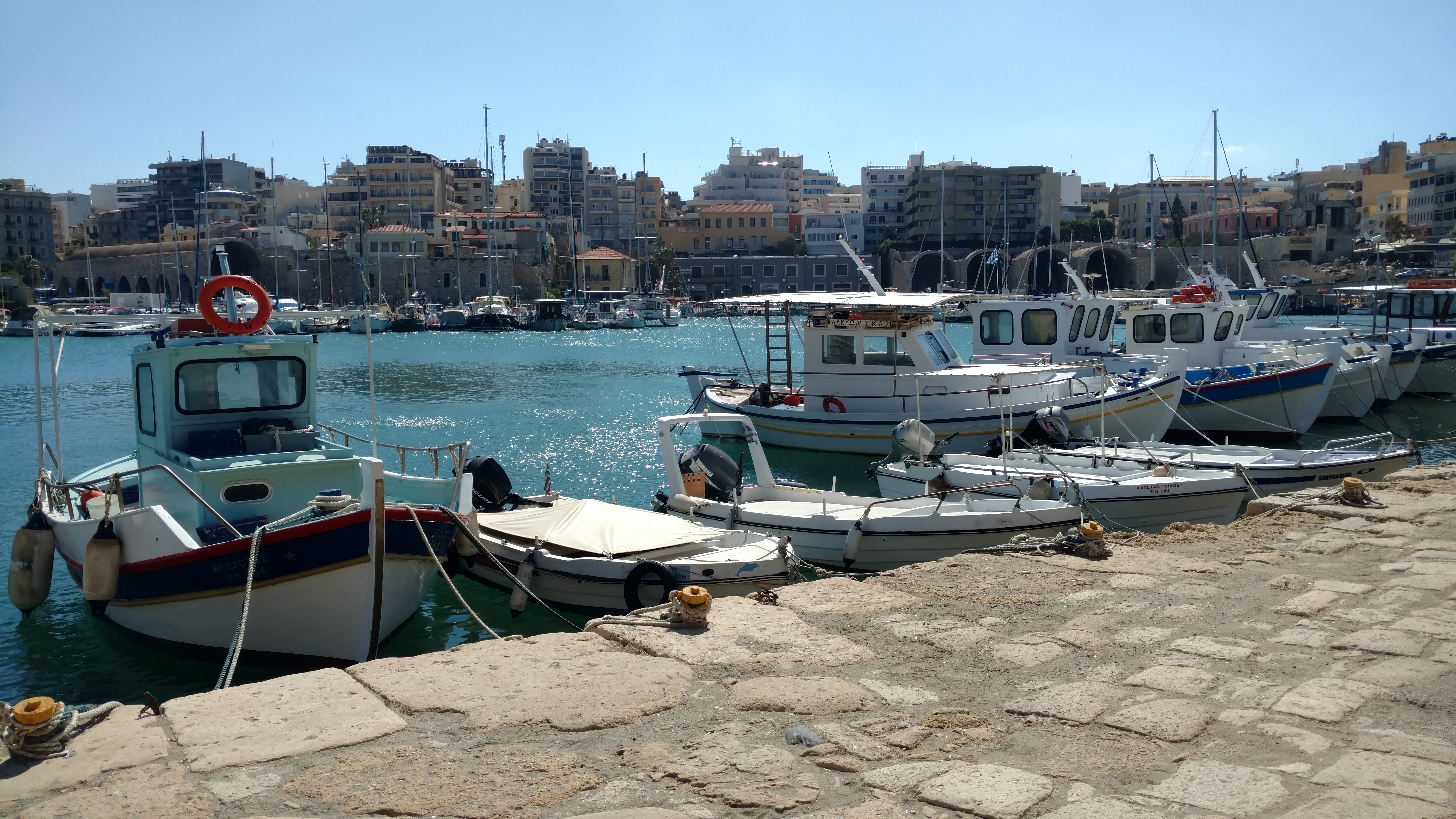 In the evening the weather moved in promising rain the following day. Waking up in the morning was just that, rain. We packed up between showers and headed to the port and to grab a bite to eat. Everything was closed, including the ferry building to buy our tickets. We finally rode back up the mountain to find a Gyro to eat in the small village and get warm with a cup of coffee. The only ferry to Crete left in the late afternoon and was a 10 hour ride, getting us in at around 02:00hrs. We had found a inexpensive beachfront room for a couple nights and the host agreed to let us in sometime in the wee morning hours.