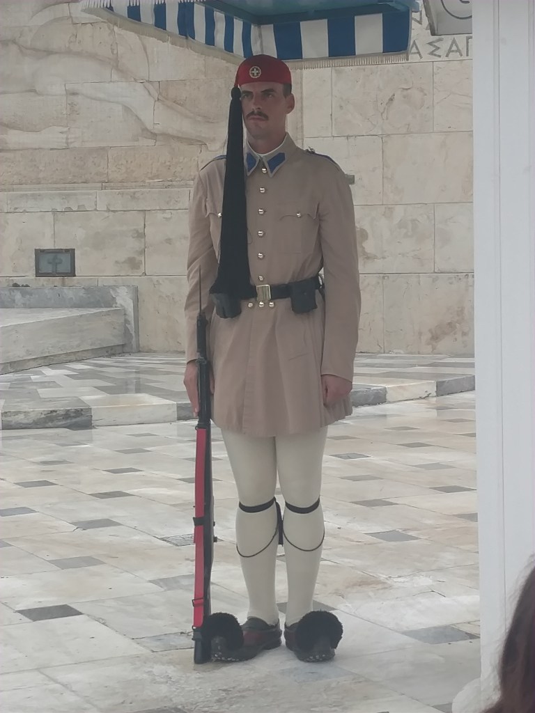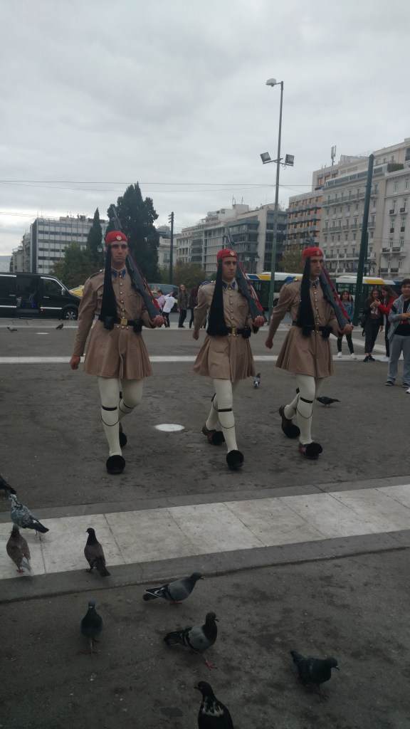 The next day we decided to buy our ferry tickets before hopping back on the bus for more exploration. Getting off at a couple locations to look around we finally headed to the Old Market to wander around some. On the way we passed the Presidential Palace. The Changing of the Guard at the Tomb of the Unknown Soldier was about to take place. We hopped of the bus and were treated to the wonderful ceremony. From the side the three guards entered the square, two officers and the guard. as they approached the spectators parted down the center of the viewing area as the soldiers high stepped through the people to the guarded area. One of the officers narrated what was about to happen and the two guards high stepped toward each other preforming the Changing of the Guard ceremony. It was very impressive.