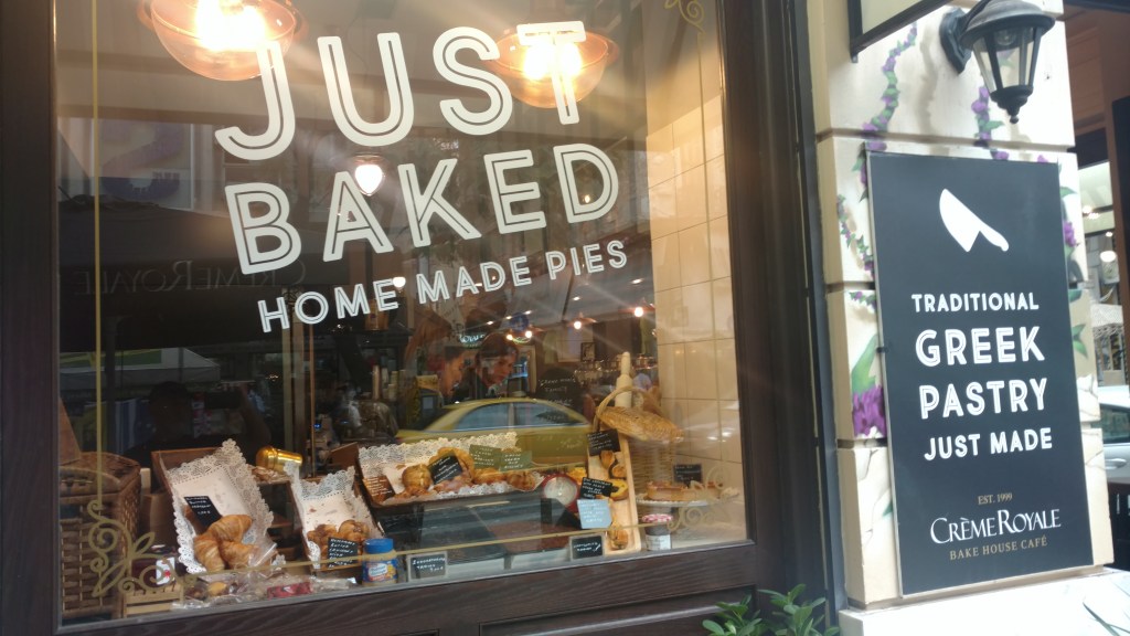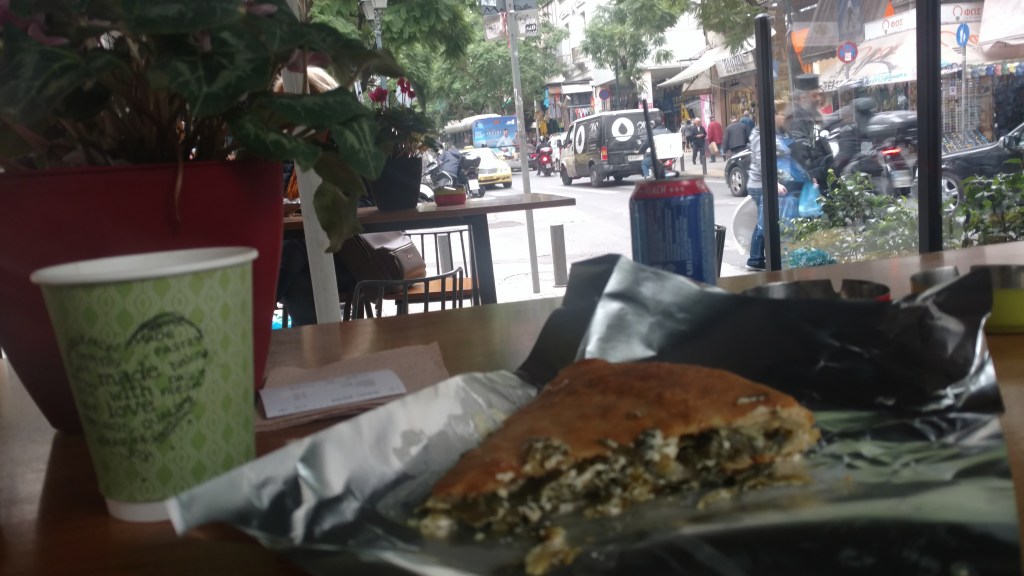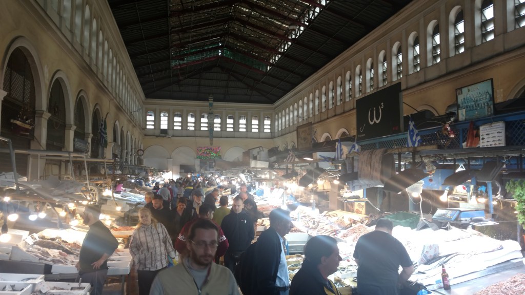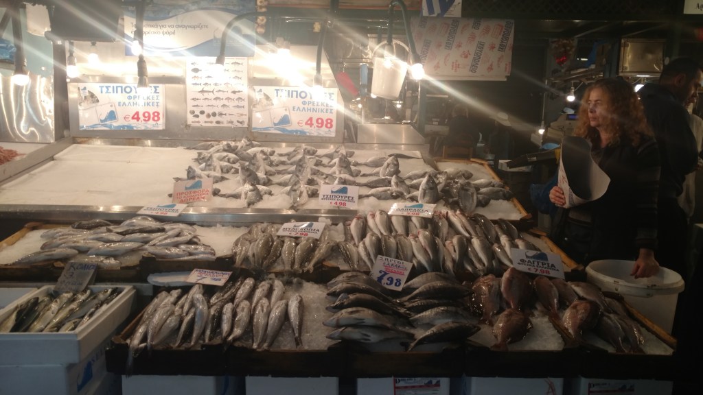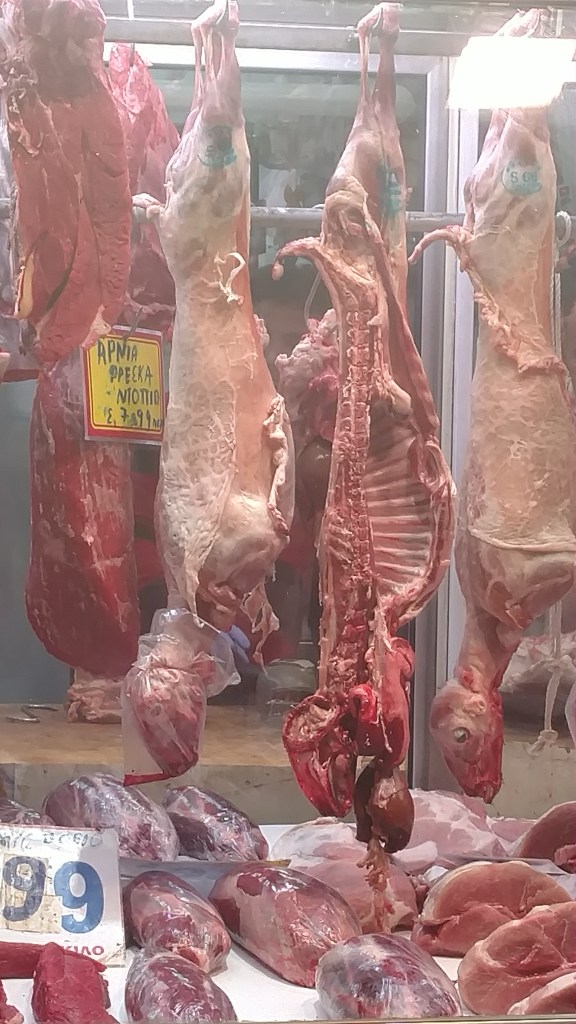 Our next stop was the old town market and lunch. Finding a cafe with an outdoor seating area we ordered a couple fresh Greek pies with meat fillings and feta cheese. Excellent choice. Sitting on the street the market area filled our senses. All around the sounds of people bargaining with the shop owners for the best price, couples chatting, scooters buzzing, horns honking gave us a sense of excitement.