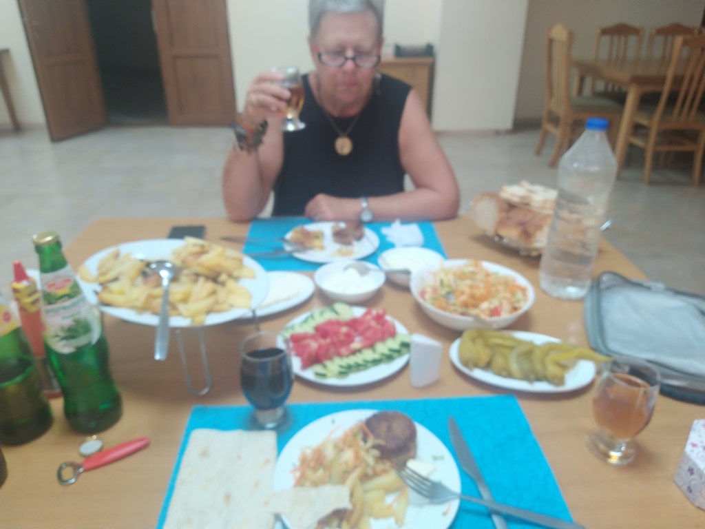 Leaving Armenia we took the northern border crossing into Georgia and headed to the city of Tbilisi. The roads were good and the border crossing took only about 2 hours and was easy. On the way we stopped in a little village to find a place to spend the night. We pulled in to the well kept, but deserted hotel and were greeted by the teen son of the family. They spoke some English. Once he learned we were from the US the entire family came to the reception area. They had never had an American stay at the hotel, much less seeing us riding through their country on a motorbike. We were embarrassingly treated like royalty, with them even cooking a wonderful multi-course meal for us. They had a little boy with beautiful eyes wearing a baseball cap. He and Melanie hit it off and they played little games in the lobby. My bike was parked by the door with someone watching it through the night.