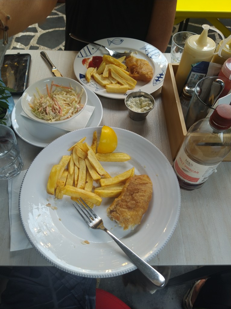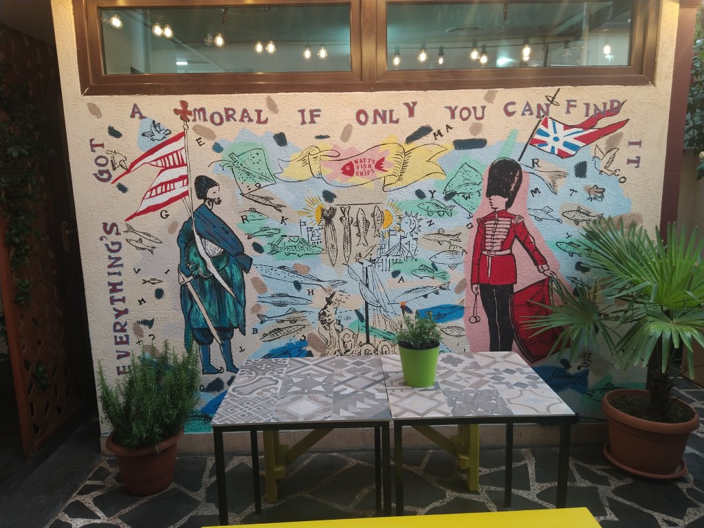 A zipper on my riding jacket had broke leaving the vent open. After we got off the bus we grabbed the jacket and walked downtown looking for a sewing shop. We found one without much effort and left the jacket overnight so they would fix the zipper. We picked it up the next morning finished and it cost virtually nothing. As we were walking to find the sewing place we passed a UK themed fish and chips restaurant. On our way back we decided to try them out. The only thing really similar to the UK was the theme of the restaurant. The fish and chips were cooked okay but the oil caused my gut to do a flip-flop. There is also a lot of graffiti in the area showing the people’s feelings of the Russian war on Ukraine.