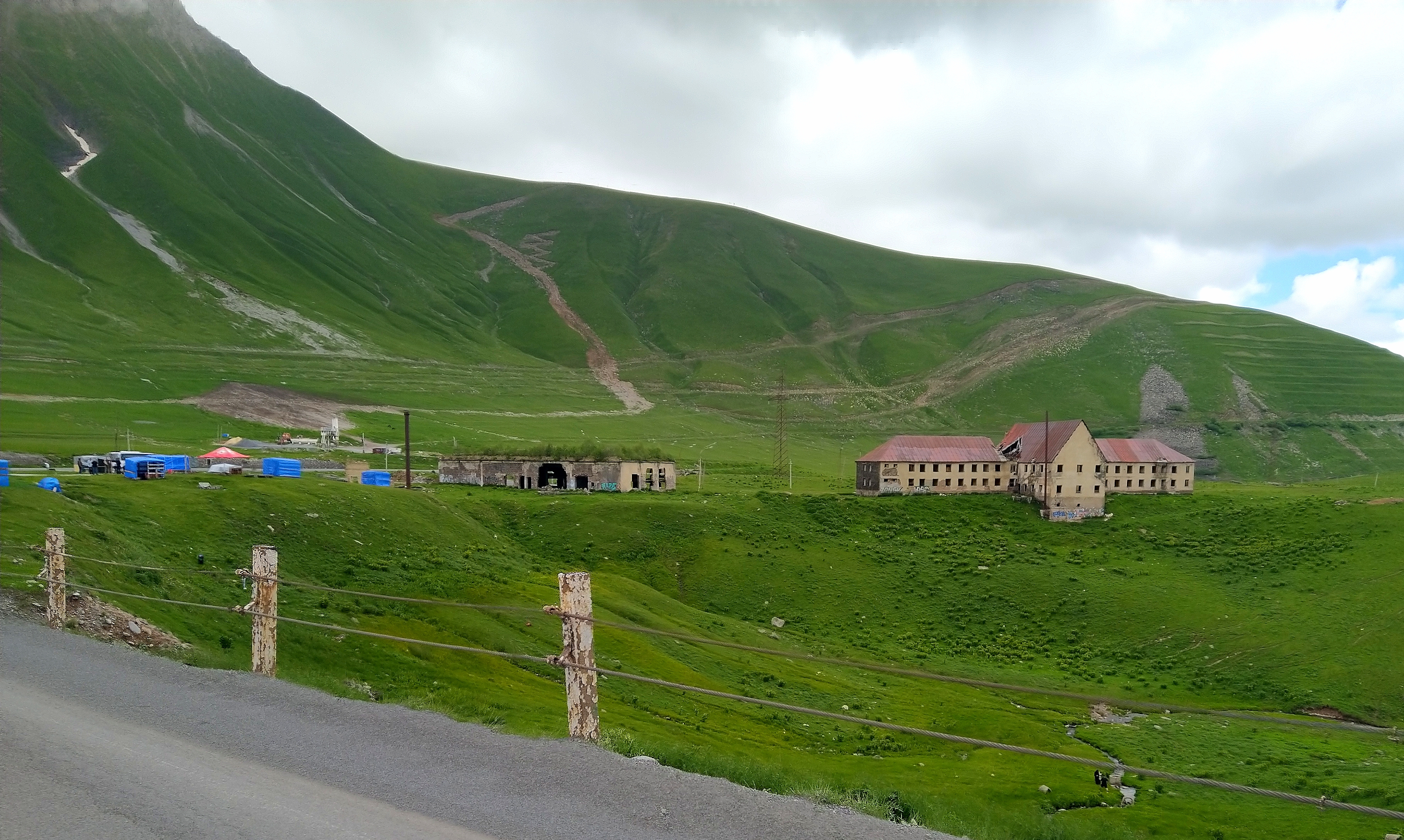 The road was basically an out and back of about 70 miles. The temperature’s continue to drop and the wind to increase as we neared the top of Jvari Pass. There were several avalanche tunnels that we passed through on our way up and over the past. Just before the pass is a monument, The Russia – Georgia Friendship Monument. This large concrete monument, built an 1883, is to commemorate relations between the two countries and the bicentennial of the Treaty of Georgievsk. Inside the monument is a large tile mural that spans the whole circumference of the structure and depicts scenes of Georgian and Russian history. As I understand it, this treaty swore Georgia to allegiance to the Russian emperors, to support Russia in war, and to have no diplomatic communications with other nations without Russia’s prior consent.
