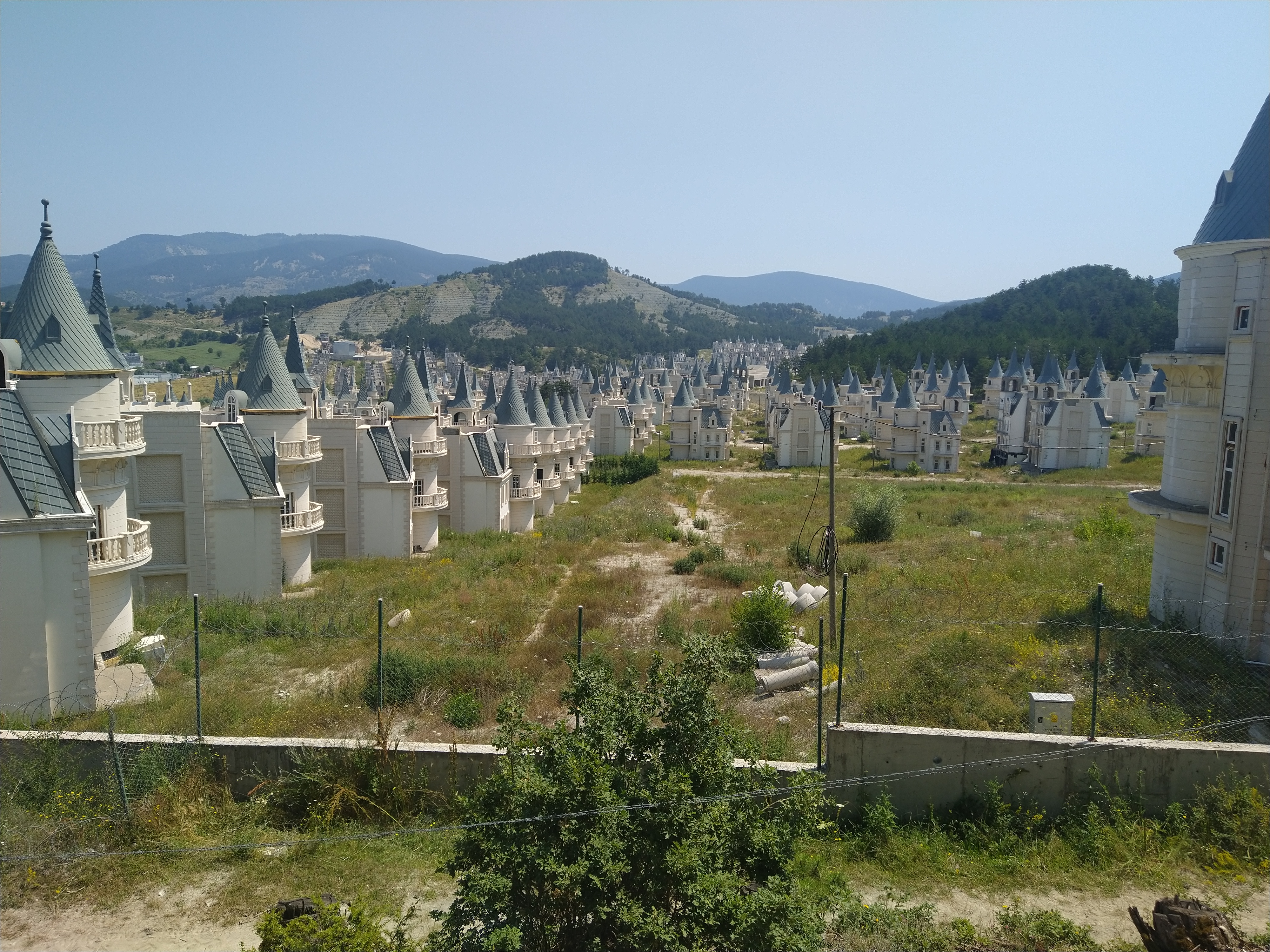 We had decided against visiting Istanbul as we needed to get to Motocamp Bulgaria for the Horizons Unlimited Bulgaria travelers meeting. We were presenting our ride around Africa and were excited to get there, as many of our friends would be in attendance. On the maps we had noticed a small place inland called Burj Al Babas. This was a deserted housing project in the middle of nowhere. It consisted of $732 miniature chalets built to Target in Middle Eastern market that was started in 2014. It went bankrupt in 2019 after presales of 50% in the US$350,000 to $500,000 range. The community was meant to have its own community center with shopping, theater, thermal spas, etc. Not one was ever finished. They are now looking for a buyer. I had heard that it is highly guarded with fencing and barbed wire around the outside. While we were up on a hill overlooking the project having a drink of water out of a well we heard allowed bang. Thinking, ” Is that a gunshot!”, we quickly hopped on the bike and got out of there.