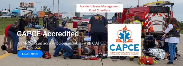 Accident Scene Management (ASM) is a 501(c)3 non-profit organization dedicated to reducing injuries and fatalities to Motorcyclists through First Response Education. ASM has trained nearly 40,000 students through the expertise of over 100 instructors in 32 states across the USA. We have become the largest Motorcycle Trauma Training organization in the world, leading the way with instructors in South Africa, Australia, the Philippines & the USA. ASM / Road Guardians accredited by CAPCE (Commission on Accreditation for Pre-Hospital Continuing Education).