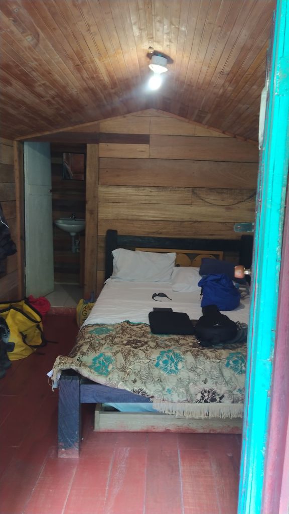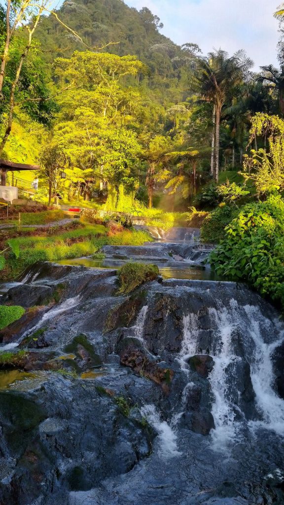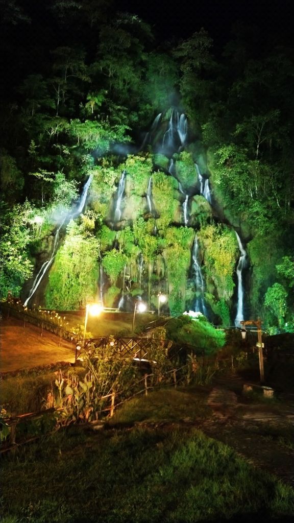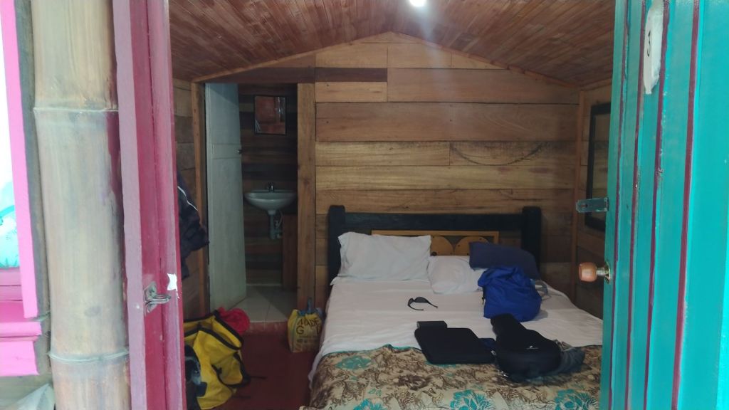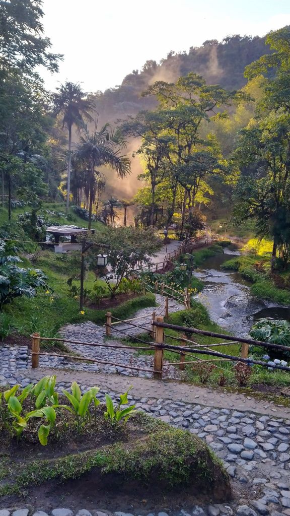 We had left Medellin without a problem. Melanie’s knee has been giving her issues since Mexico. At one of our early stops Melanie’s foot slipped on the peg and she twisted her knee again. We taped it and put a brace on it and made it to Termales. Termales is known for its incredible hot springs and waterfall. For the night we had booked a cozy hostel, cabaña el portal. This place was just down the road from the Thermal Spa Santa Rosa. After a good dinner next door we hobbled to the hot springs for a good soak on that knee.