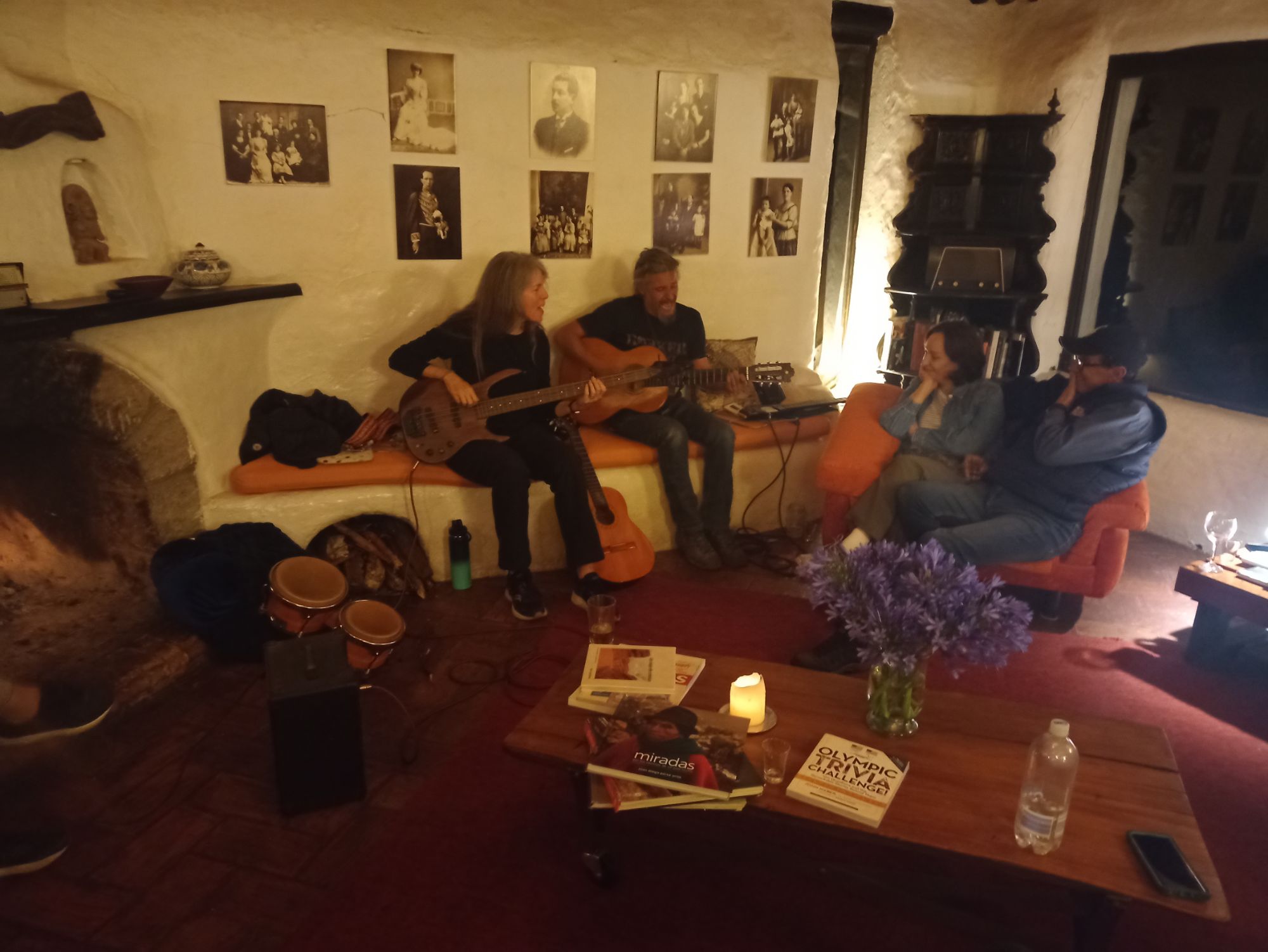 It was a great three days of visiting with friends, old and new. We met some couples at the start of their big trip. Carl and Isabel are from the UK, aka Life 2 On Tour. Simona and Stefan are from Germany, aka Rock n’ Ride. Angela and Michael are from Canada, aka Twonie Project. So many interesting people and stories. In the back of the resort Raul had constructed an enormous yurt. This had been built for the first HU Ecuador in 29 days. At night we all gathered around the fireplace while Stefan entertained us on a guitar. My new carbon fiber Enya tenor ukulele even came out to join in for a bit.