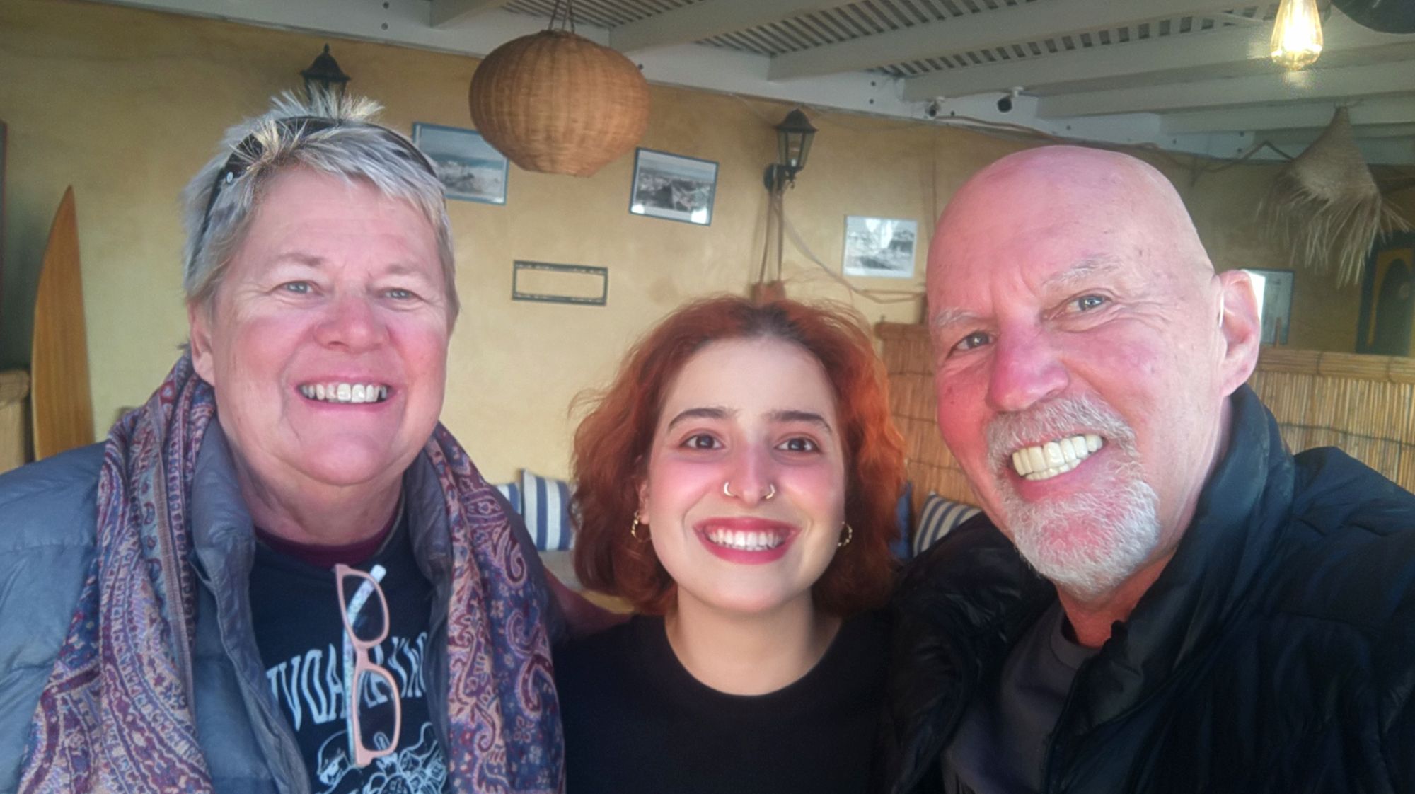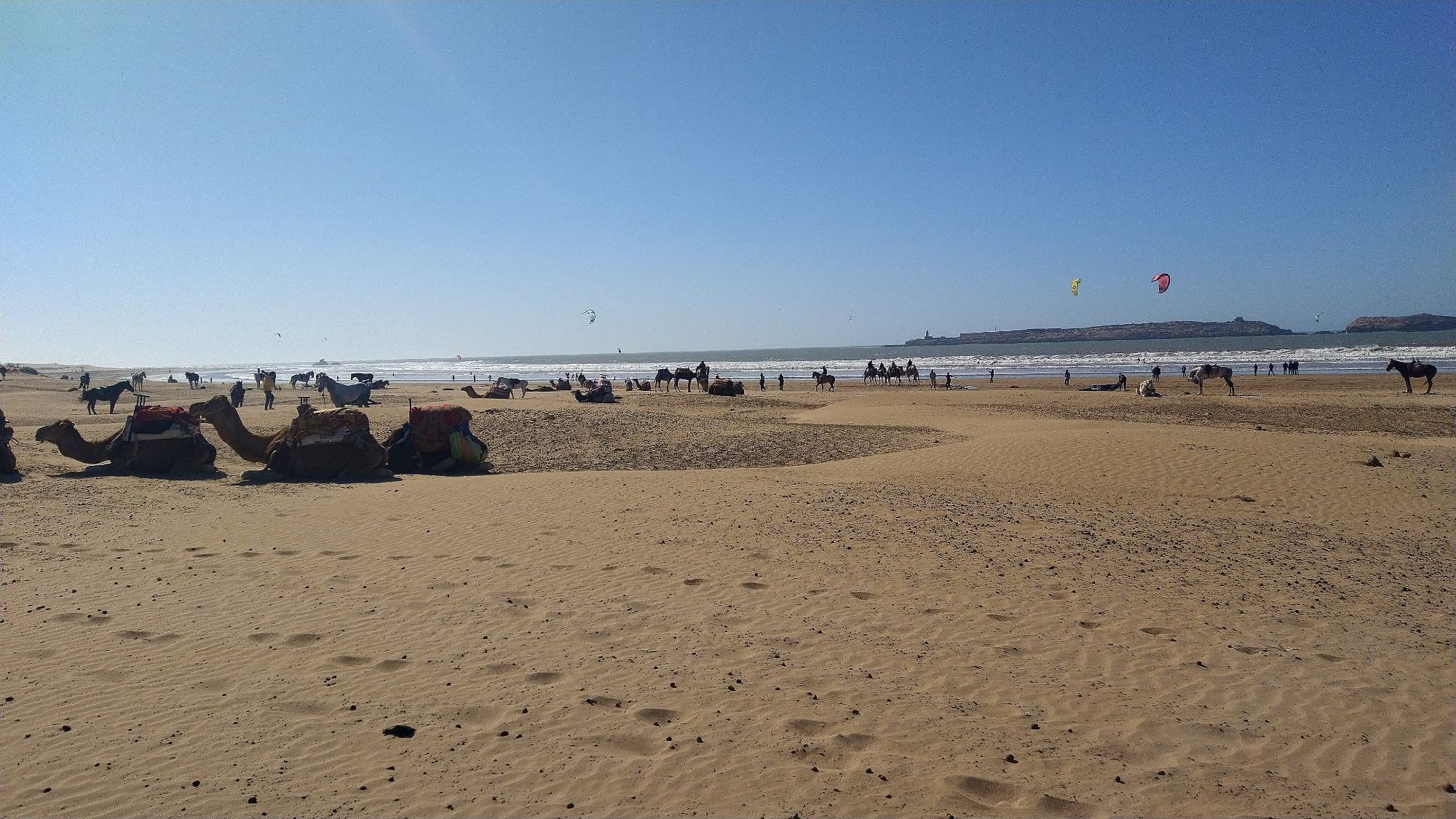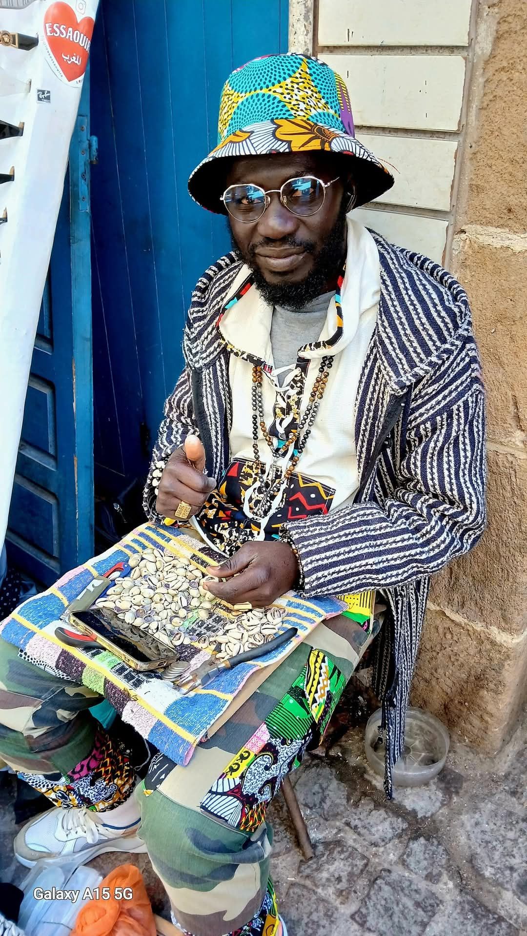 We arrived to Essaouira and found a hotel a couple miles from the kasbah and medina. Our hotel was on one end of a beautiful crescent shaped beach. It had a wide boardwalk leading to the medina at the other end. Along the way we met walkers, sun-worshipers, kite-surfers and camel riders. The market area was a maze of narrow alleys filled with vendors. We found an ice cream vendor and then wandered into a silversmith shop to barter over a pair of earrings. Bartering is a way of life here. It’s like an insult to the local not to participate. It’s all done with a friendly banter, takes time, and usually involves tea. It went something like this. Me: how much? Vendor: 1,000 (Dirham). Me: Free. We both laugh and have tea. Vendor: 500. Me: 50. This goes on with good natured banter until we agree on a price. This time is was 160 dir (about US$16). Then Melanie found a man from Senegal making jewelry. His name was Simba. We bought a colorful bracelet as a wearable souvenir of the area. Later we found a cafe and sat to just people watch as the shadows started to grow. Finally a quick dinner of a fish sandwich and fish and chips at Fishburger Essaouira.
