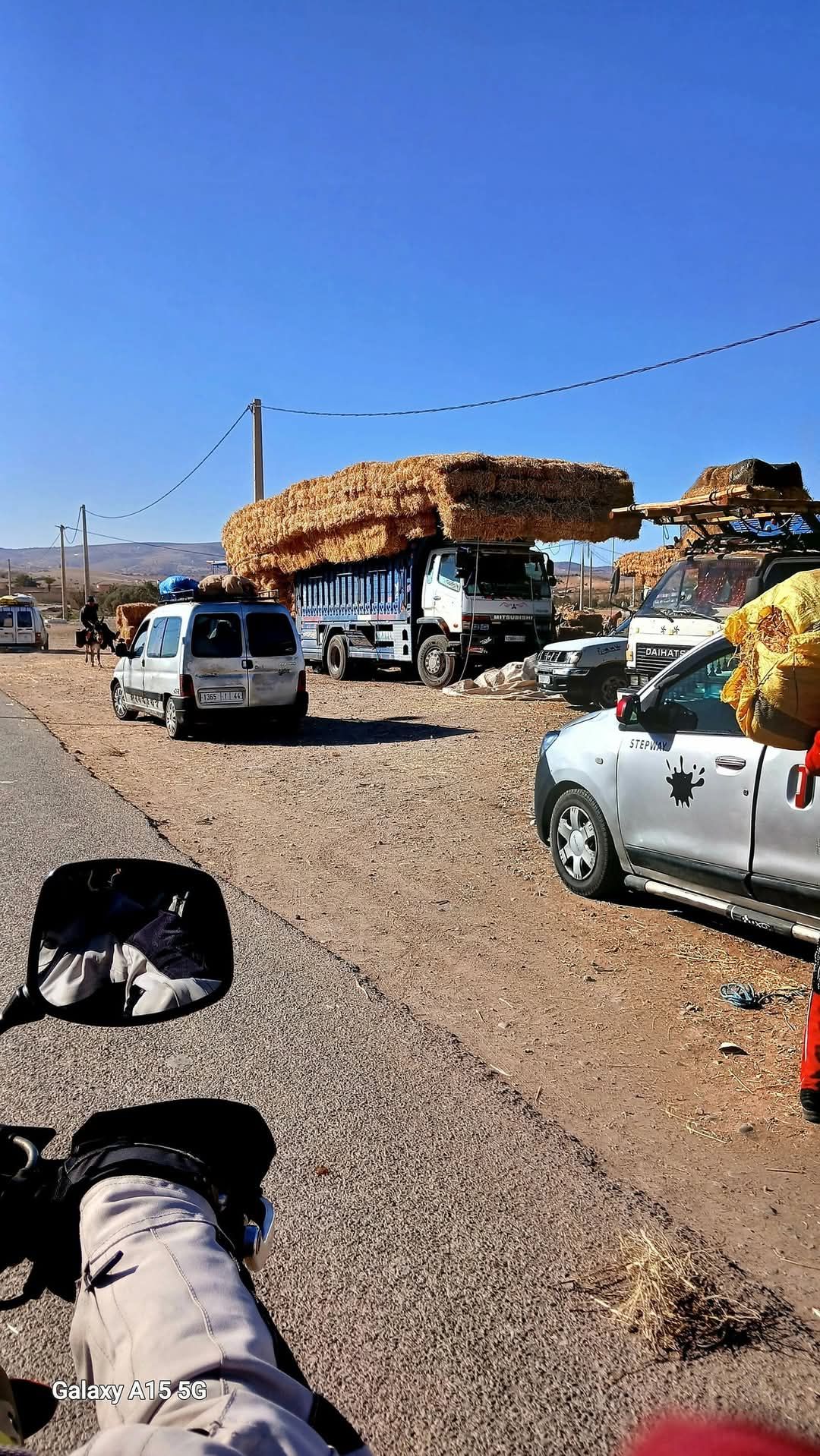 The road ahead was jammed with people and vehicles, just a mess. We had come across a scene looking like this years ago in Honduras. At that time there was a large protest going on. My mind immediately jump to that time and we proceeded down the road into the congestion. It was elbow to elbow as we passed through the Thursday marketplace. Sometimes your mind gets the better of you. As we exited town, trucks were on the side of the road. They were piled high and overloaded with hay bales. Their enormous loads were being transferred to waiting trucks and vans. Some of these smaller trucks were about to pop their suspensions. I would overtake them only on the straight sections. In the corners, the top-heavy load of hay seemed likely to overturn the vehicle.