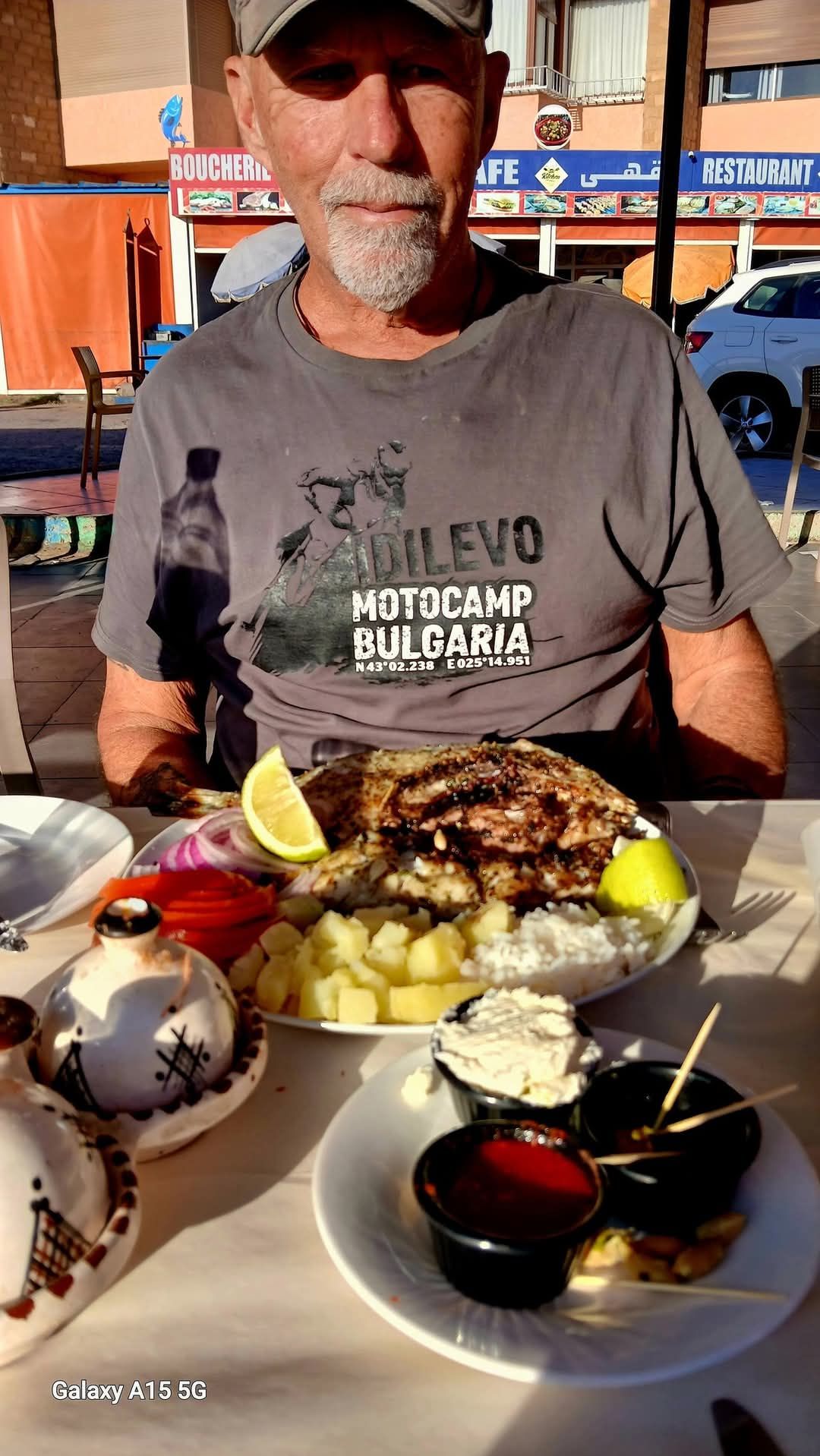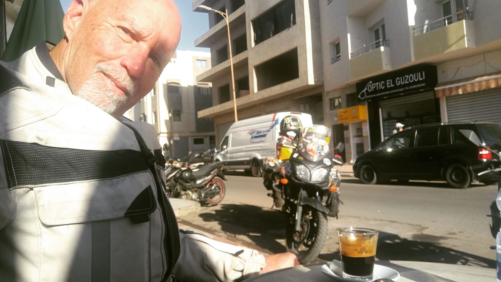 Melanie had been desperately wanting a pedicure after a month wearing motorcycle boots. We traveled inland a bit in the direction of Marrakesh and found a spa. Perfect! Right around the corner was a coffee shop. I ordered an espresso and opened my Kindle on my phone. I sat in the early morning sun Reading another chapter from Friend Sam Manicom’s newest book. His new book is titled “The Moment Collectors, Asia”. It is a collection of 20 short stories from travelers in different parts of Asia.
