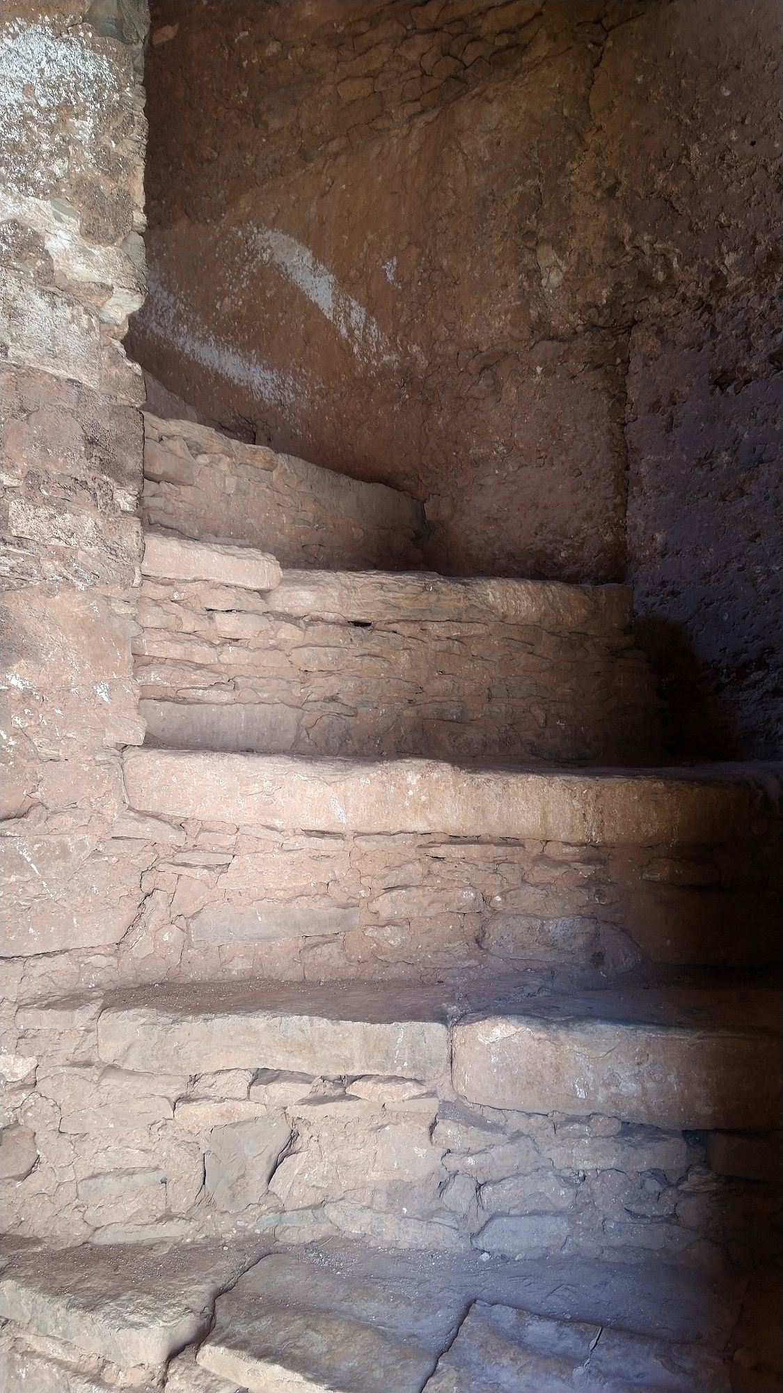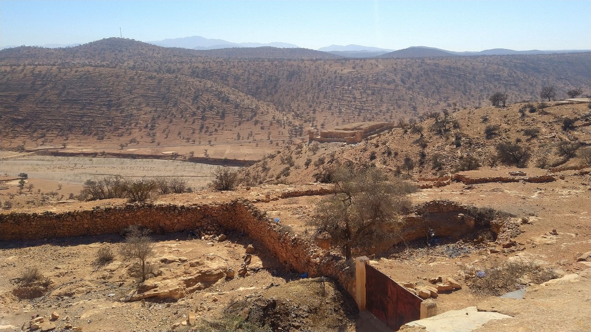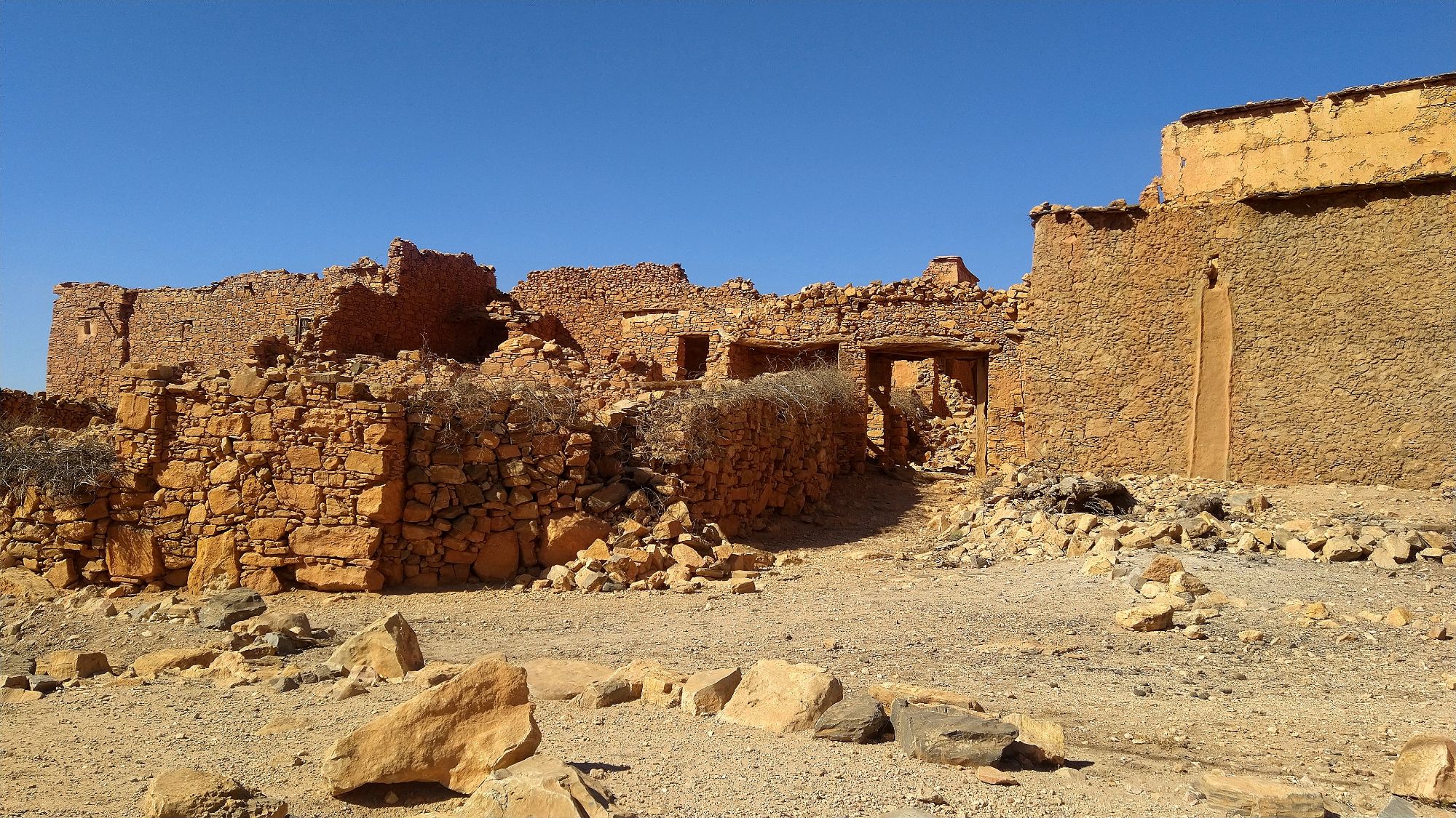 A friend of ours, Henriette Thiim (“fortheloveofwheels”), had recommended for us to visit the Kassba Afayene Inoumare. Our first try using the GPS took us on a route that eventually went to sand and ended. We saw our destination ahead. Yet, it lay beyond a dry rocky expanse. We needed to cross a riverbed and climb a steep hill. Nope. We again tried and found a different route and the effort was totally worth it. We were met by a young girl as we arrived. Melanie got off the bike and went to talk with her. She showed her a picture of her that Henriette had sent Melanie. A big smile erupted on her face as she recognized the time the picture was taken. She even showed us where Henriette had camped for the night. She offered to show us through the amazing structure that was over 200 years old. Her family had lived there for several generations. Her GGGG grandfather, or there about, had built this entire structure by hand.