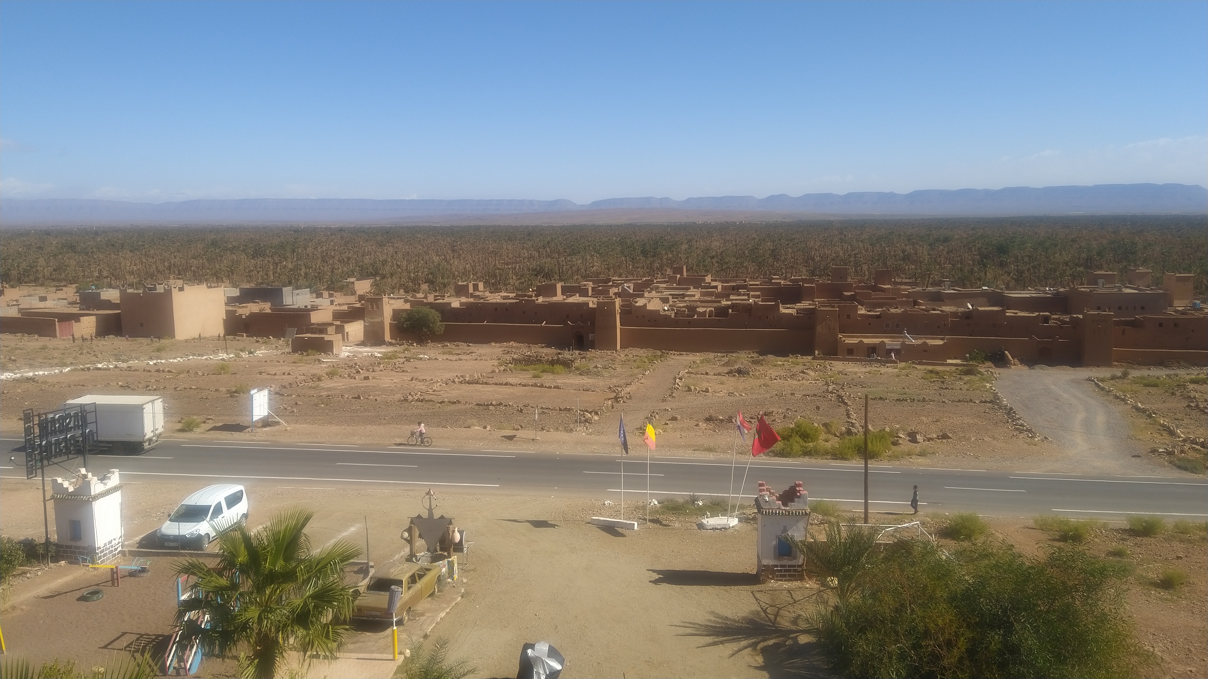 After we encountered the landslide we stopped for the night in the village of Zagora. We found a small kasbah on the north of town and again were the only guests. We had decided to spend two nights to catch up on a couple things. The next day was Sunday. The kasbah was empty and then people started arriving. It seems that the owner has a very large family. About 50 of his family were there for a family get together. The kitchen filled with folks preparing food. The smells of saffron filled the air. The playground was full of dads and children. The woman gathered in a large restaurant/seating area on one side in the building. Most of the men sat on the other side. Laughter and happy voices filled the downstairs rooms.