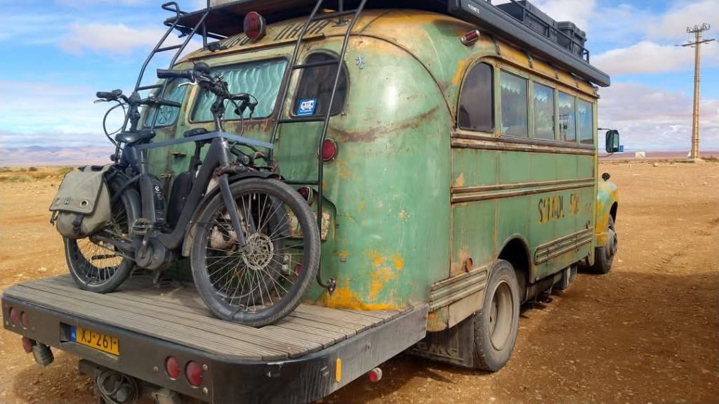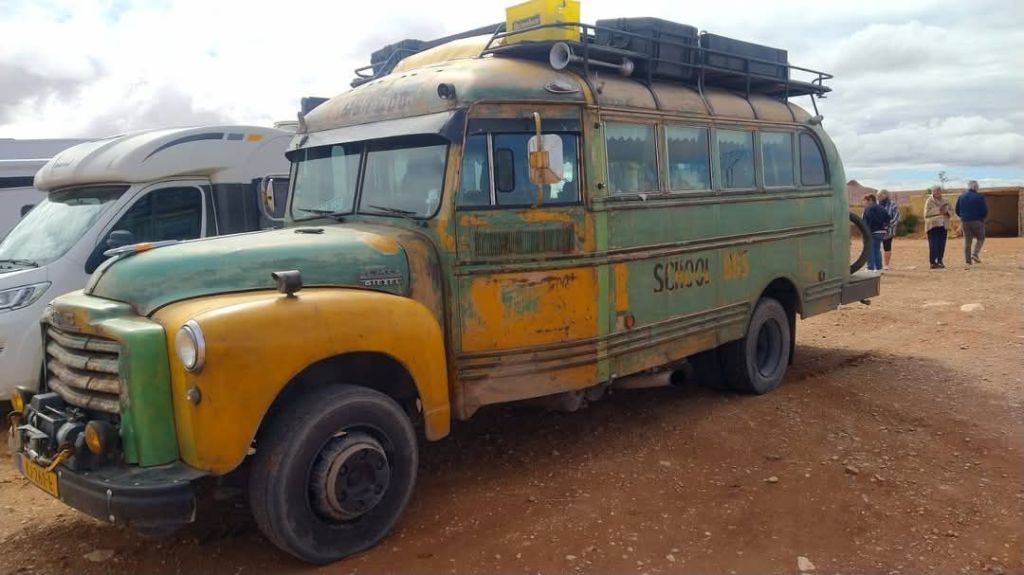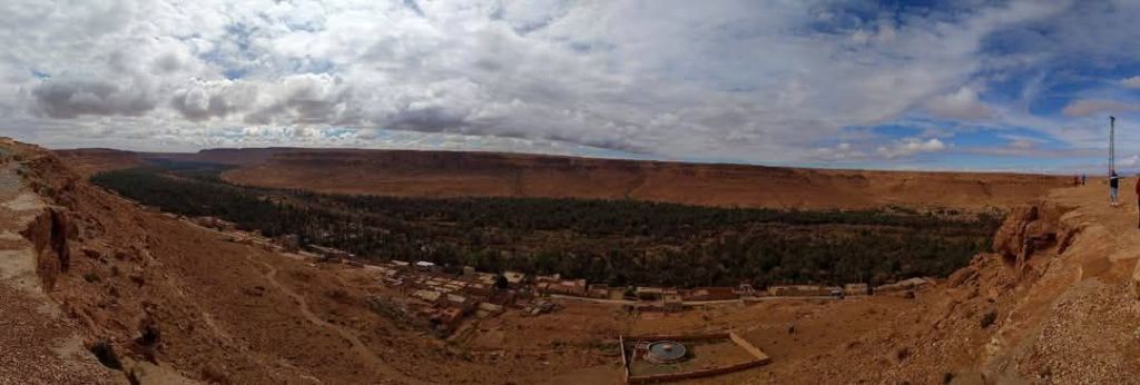 About midway through the oasis we came around the corner and saw an observation deck. It had a restaurant, coffee shop, souvenir shop and the parking area was full of vehicles. There were several rally cars there from Spain rallying through Morocco. There were almost 100 taking part in the rally. I also spotted a couple other cool looking rigs. One was an old converted school bus from Illinois, USA. I really wanted a look inside and chat with the owners. I never did see them. The 180° view from the canyon edge looking over the palm grove below was incredible.