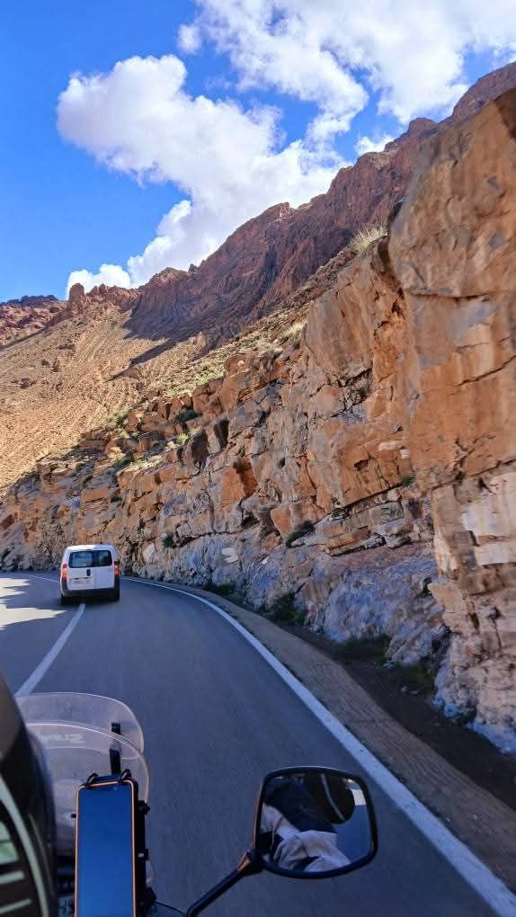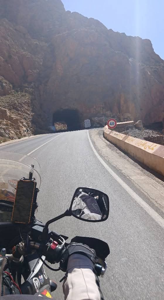 In the morning we headed north to do a exploration loop. Just a couple kilometers north we went through the Zâabal tunnel. This tunnel was built in 1929 where the French Legionnaires during the colonizing and protection period. We stopped at a bus stop to have some coffee and a snack. These are some of the best places to watch people. A vendor talked us into a deep fried pastry with sugar and cinnamon. The other thing he talked me into was a deep fried fish. It was actually a mash of sardines, deep fried and greasy. It tasted terrible. But there was one happy cat near us.