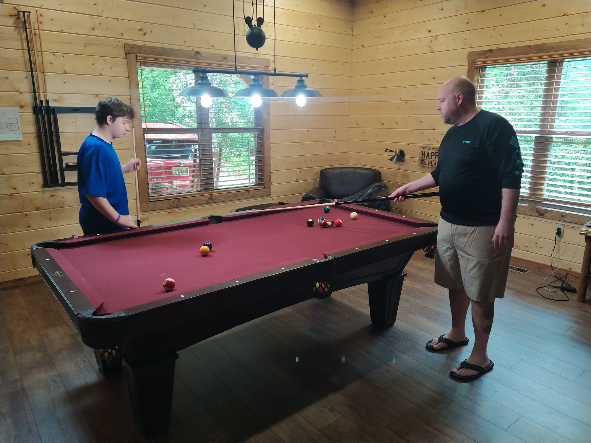 My son Dallas had invited us to a cabin they had rented in the North Georgia mountains. It’s a great time of year to go so we said, why not. We spent a few days doing some hikes, sightseeing and playing pool at the house. My grandson Caleb, is 13 years old and now as tall as I am. A little practice on the pool table and he was winning game after game. On day three we went on a hike. Dallas and his son Caleb would run up a hill then do 10 jumping jacks. It was just hilarious to watch. A few days later Dallas was on leave for a strained Achilles tendon. If you want to play, sometimes you pay. It is improving and I write this.