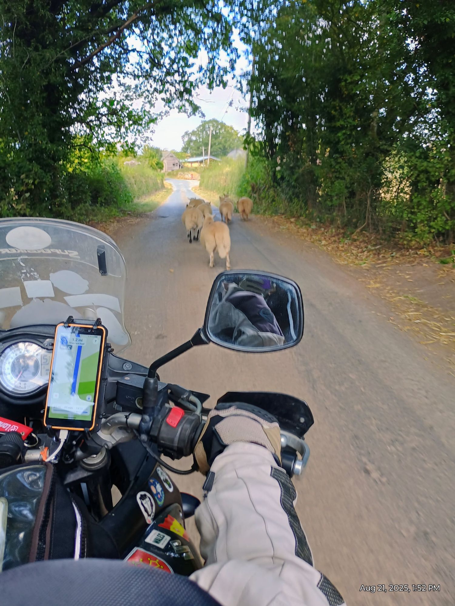 Ohh, the traffic. It’s the beginning of the bank holiday weekend. It’s sort of like Labor Day in the US. It will be the last long weekend before the kids go back to school. Today will be my last day on the bike for a while. We are riding south to stay with some friends in Somerset. Within minutes of leaving the hotel we are back in bumper-to-bumper traffic. Everybody was in a rush to get to the beach for the weekend. Filtering was more difficult this morning. We got off the main roads and settled on a ride on some of the small roads. These roads are always preferable. I have been avoiding them lately. It’s always great to have a back brake when meeting a vehicle coming at you that takes up the entire road. Or a steep hill with a vehicle coming at you. Not being able to use my right leg (the back brake leg) has been a huge annoyance.